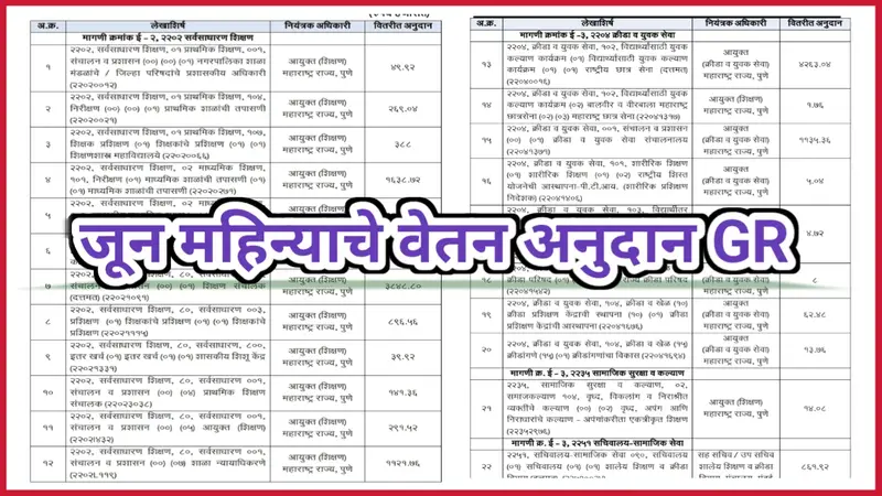 GR 05.07.2025 ने जून 2025 वेतनासाठी BEAMS प्रणाली अंतर्गत निधीचे वितरण नियंत्रक अधिकारी यांच्या नियंत्रणाखाली मंजूर केले आहे.