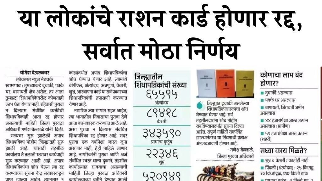 खालीलप्रमाणे महत्त्वपूर्ण निर्णय घेतले गेले आहेत ज्यामुळे काही लोकांचे राशन कार्ड रद्द होऊ शकतात:   📌 1. बिहार : e‑KYC न केल्यास 1.5 कोटी कार्ड रद्द Ration card | सरकारचा नवीन निर्णय ‘या’ लोकांचे राशन कार्ड होणार रद्द! बिहार सरकारने 31 मार्च 2025 पर्यंत e‑KYC प्रक्रिया पूर्ण न करणा­ऱ्यांचे NFSA अंतर्गत फ्री राशन कार्ड रद्द … Read more