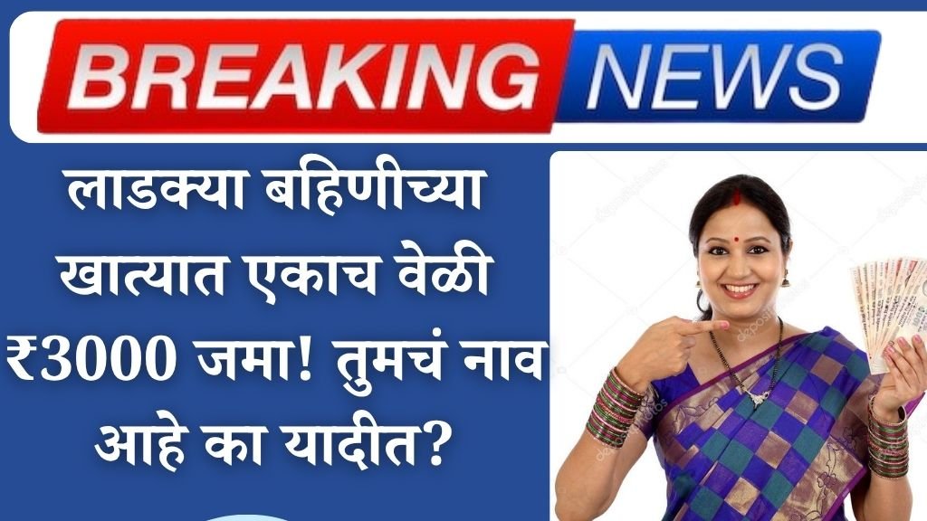 हे वाक्य “लाडक्या बहिणीच्या खात्यात एकाच वेळी ₹3000 जमा! तुमचं नाव आहे का यादीत?” असं आहे, म्हणजेच हे एखाद्या जाहिरातीसारखं वाटतंय किंवा सोशल मीडियावर व्हायरल होणारं मेसेज वाटतंय.