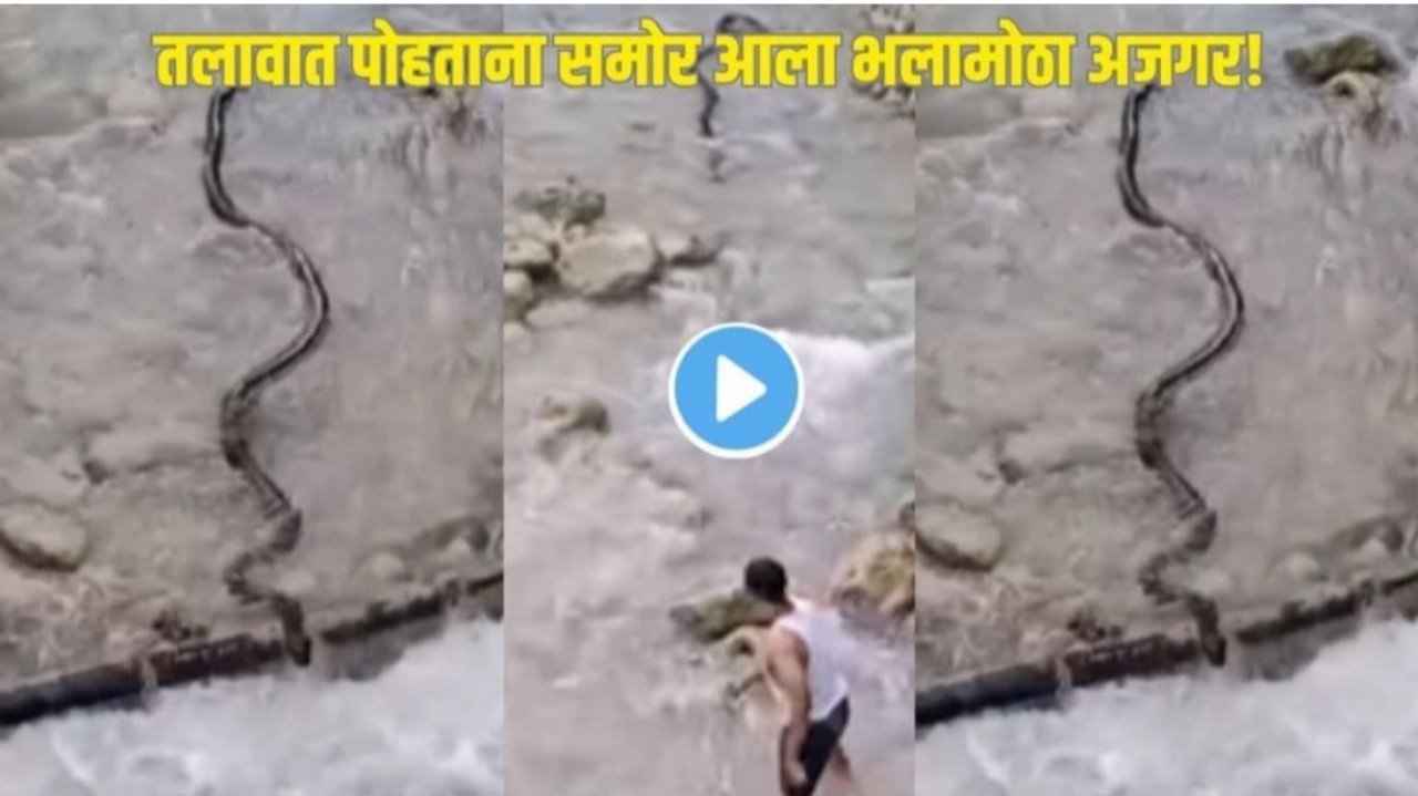 Lake Swimming Python Viral Video | बापरे! तलावात पोहताना अचानक समोर आला अजगर, लोकांची धावपळ पण एकाने दाखवलं धाडस अन् अंगावर काटा आणणारा VIDEO समोर