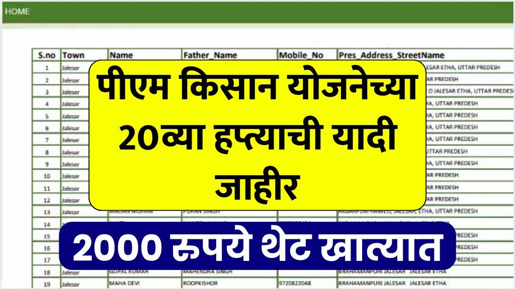 List of 20th installment | पीएम किसान योजनेच्या 20व्या हप्त्याची यादी जाहीर – 2000 रुपये थेट खात्यात