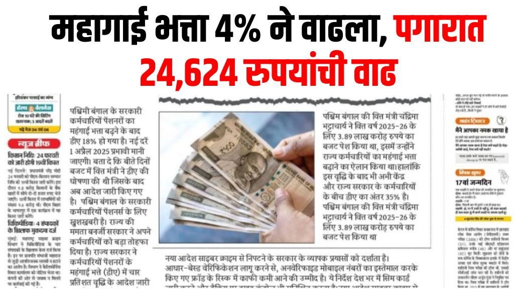 DA increased by 4% | कर्मचाऱ्यांसाठी आनंदाची बातमी! महागाई भत्ता ४% ने वाढला, पगारात २४,६२४ रुपयांची वाढ होणार