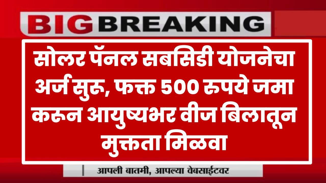 Solar Panel Yojan | सोलर पॅनल सबसिडी योजनेचा अर्ज सुरू, फक्त ५०० रुपये जमा करून आयुष्यभर वीज बिलातून मुक्तता मिळवा