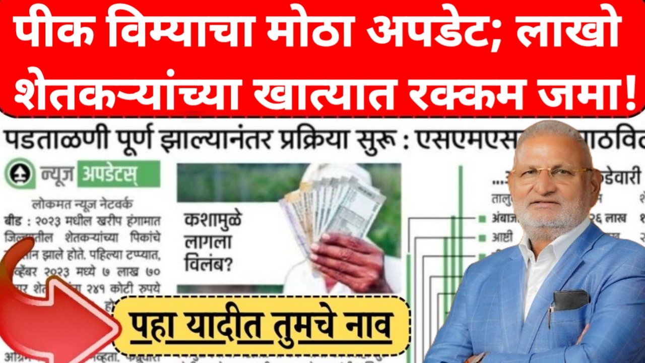 Crop insurance | पीक विम्याचा मोठा अपडेट; लाखो शेतकऱ्यांच्या खात्यात रक्कम जमा! नाव तपासा लगेच
