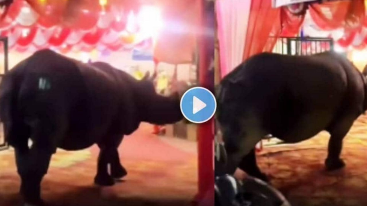 Video Shows Rhino Wild Card Entry In wedding | एक लग्न असंही! भर मांडवात जंगली गेंड्याची एंट्री; मुलांनी काढला पळ अन्… पाहा व्हायरल VIDEO