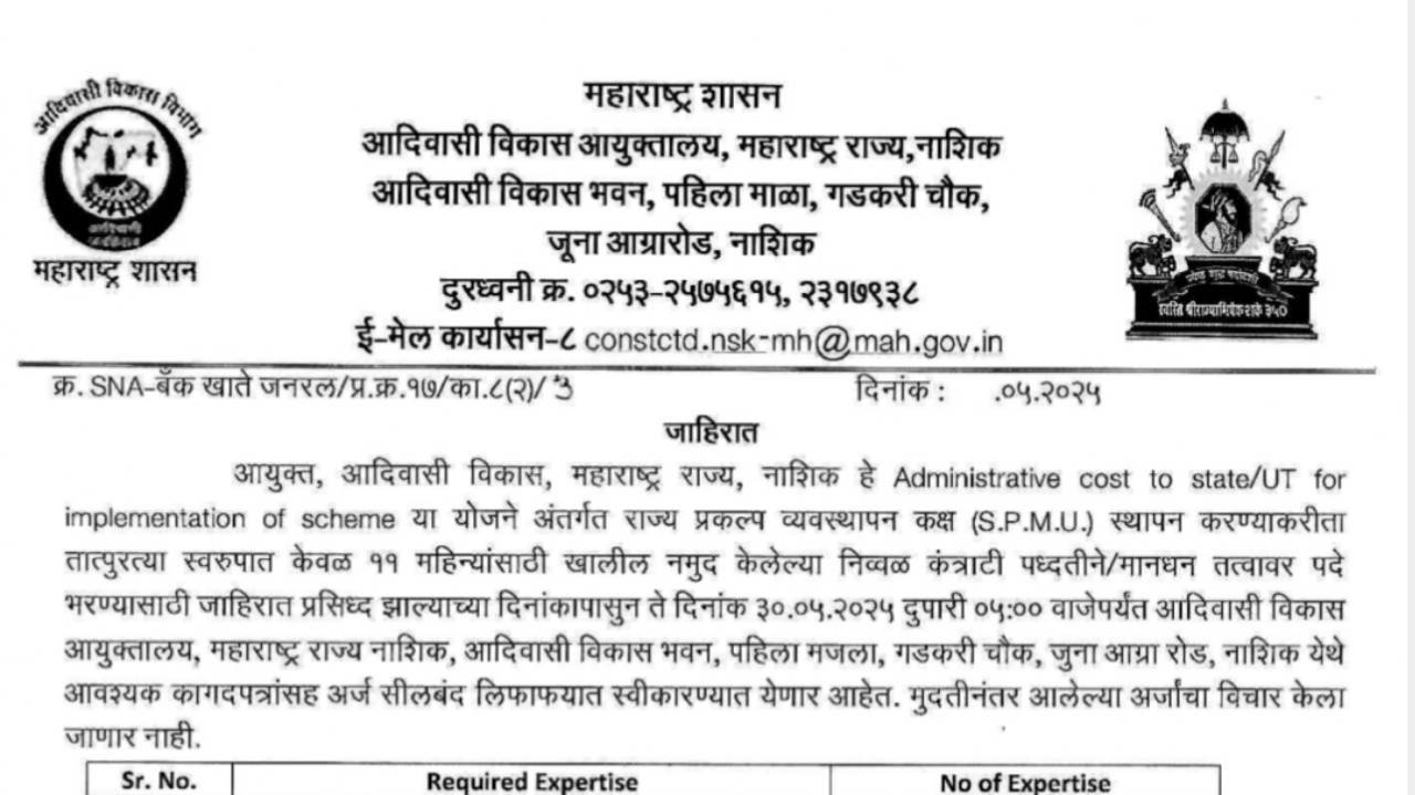 new bharti | ‘आदिवासी विकास विभाग’ अंतर्गत नवीन जागांसाठी भरती सुरू! | आजच अर्ज दाखल करा.