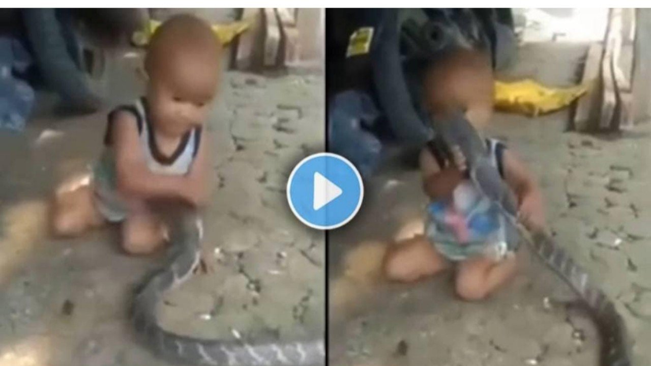 Baby Play King Cobra Viral Video | चिमुकल्याने महाकाय सापाला पटापट चापट मारल्या, फणा धरून तोंडाजवळ नेलं अन्…; धडकी भरवणारा VIDEO VIRAL