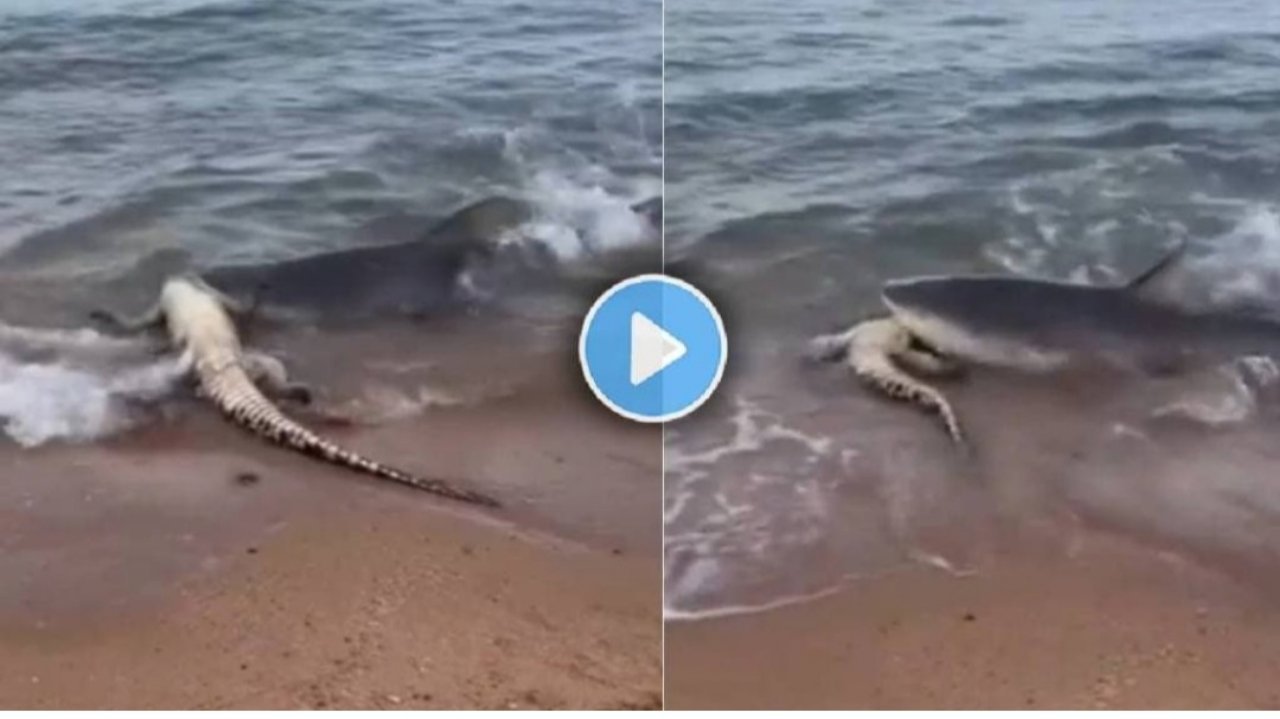 Video Viral | भयंकर! महाकाय शार्कने जिवंत मगरीला क्षणात गिळलं, तोंड जबड्यात पकडलं अन्…; पाहा धडकी भरवणारा VIDEO