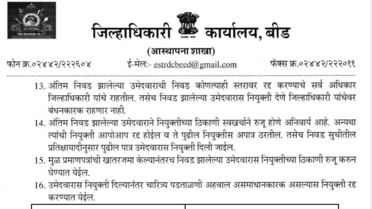तुमचं वाक्य असं आहे: ‘जिल्हाधिकारी कार्यालय’ येथे नोकरी मिळविण्याची चांगली संधी | आजच अर्ज करा. हे वाक्य थोडं अधिक प्रभावी आणि आकर्षक बनवण्यासाठी खालीलप्रमाणे सुधारित करता येईल: ✅ जिल्हाधिकारी कार्यालयात नोकरीची सुवर्णसंधी!   आता सरकारी नोकरी करण्याची तुमची संधी! जिल्हाधिकारी कार्यालयात विविध पदांसाठी भरती सुरू आहे. 👉 आजच अर्ज करा आणि आपल्या उज्ज्वल भविष्याची सुरुवात … Read more