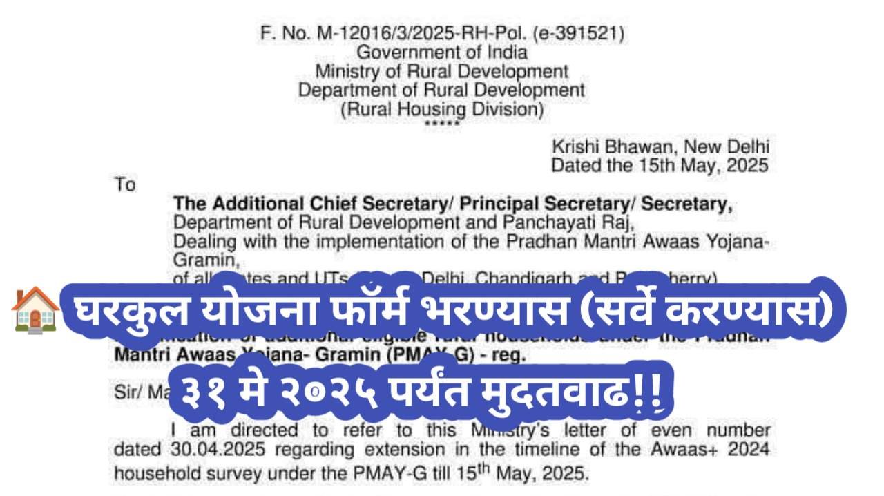 new update | 🏠 घरकुल योजना फॉर्म भरण्यास (सर्वे करण्यास) ३१ मे २०२५ पर्यंत मुदतवाढ!!