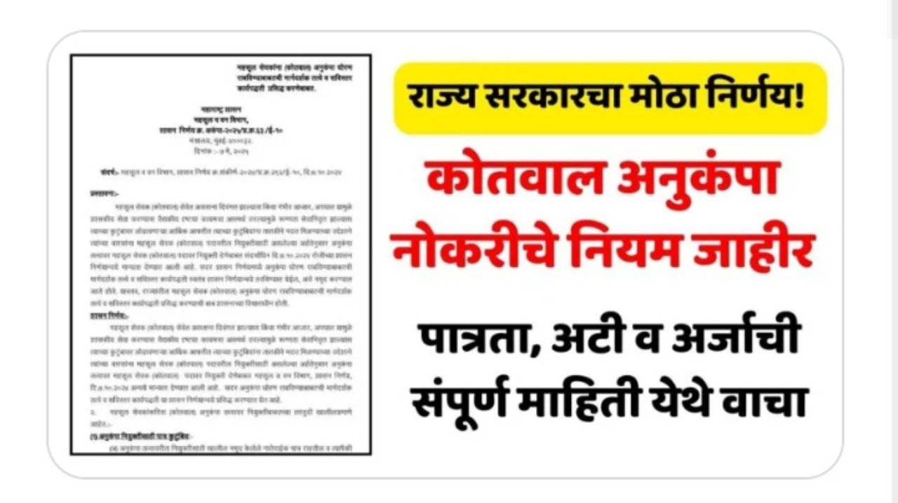 Kotwal Anukampa GR  | राज्य सरकारचा मोठा निर्णय ! कोतवाल अनुकंपा नोकरीचे नियम जाहीर, पात्रता, अटी व अर्जाची संपूर्ण माहिती येथे वाच