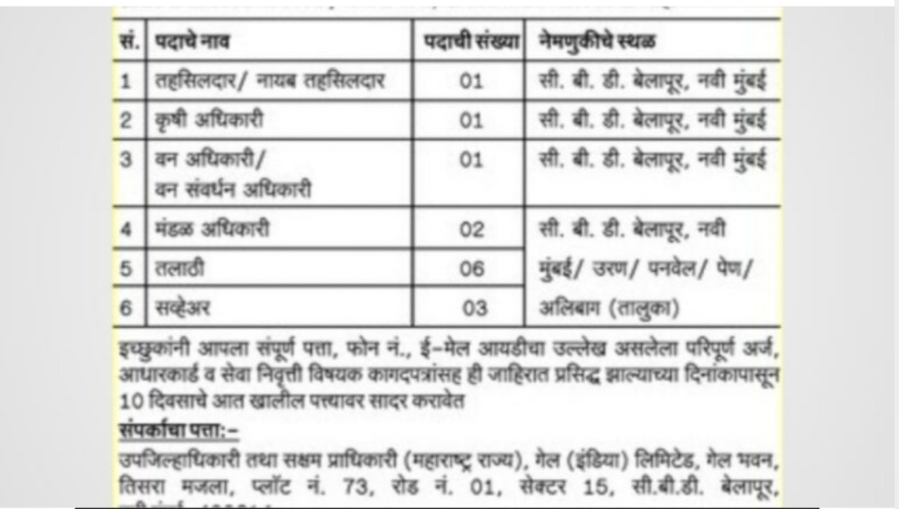 सध्या तलाठी, मंडळ अधिकारी, तहसीलदार आणि इतर पदांसाठी भरतीसंबंधी कोणतीही नवीन जाहिरात उपलब्ध नाही. मात्र, या पदांसाठी भरती प्रक्रिया वारंवार होत असते, त्यामुळे भविष्यात अशा संधी उपलब्ध होऊ शकतात.   भरतीसाठी आवश्यक पात्रता आणि प्रक्रियाः   तलाठीः स्नातक पदवी (कुठल्याही शाखेतील) आवश्यक.   मंडळ अधिकारी: स्नातक पदवी आणि संबंधित क्षेत्रातील अनुभव आवश्यक.   तहसीलदारः राज्य … Read more
