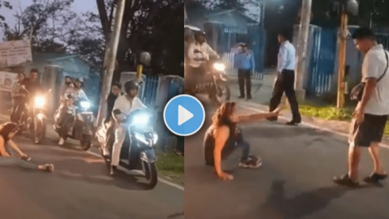 व्हिडीओमध्ये दिसते की, काळ्या स्लीव्हलेस टॉप आणि डेनिम घातलेली एक महिला रस्त्याच्या मधोमध बसलेली आहे. रस्त्यावरून वाहनांची ये-जा सुरु आहे तरीही तिला त्याची भिती किंवा कसली पर्वा दिसत नाही. रस्त्यावरून जाणाऱ्या गाड्यांच्या मधोमध बसून ती त्यांच्या मार्गात अडथळा आणताना दिसत आहे. जमिनीवर बसलेली ही तरुणी थोडीशी पुढे झुकलेली दिसत आहे आणि तिच्या चप्पलपैकी एक नीट पायात घालत आहे.